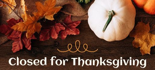 The library will be closed for Thanksgiving, Thursday, November 27th through Saturday, November 29th. We are closed on Sundays and Mondays. We will reopen as normal on Tuesday, December 2nd.